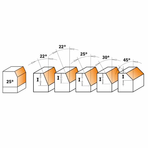 CMT-ova kombinacija ravnih i nagibnih glodala savršeni su za izradu precizne završne obrade na laminiranim površinama. Kutevi se mogu mijenjati bez promjene glodala jednostavnom promjenom visine.