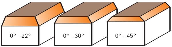 0° – 22°, 0° – 30°, 0° – 45°, 22°, 30°, 45°