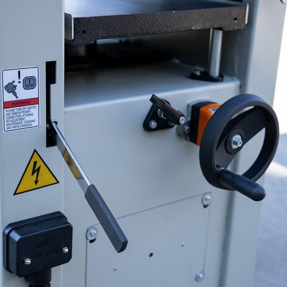 Stroj je opremljen podesivim zaštitnim poklopcem koji se može podizati, spuštati i izvlačiti, čime se osigurava sigurniji rad u radionici. Zahvaljujući snažnom motoru od 2,2 kW i kvalitetnoj mehanici, ovaj stroj predstavlja pouzdano rješenje za stolare i obrtnike koji traže preciznu pripremu drva i dugoročnu pouzdanost u radu.